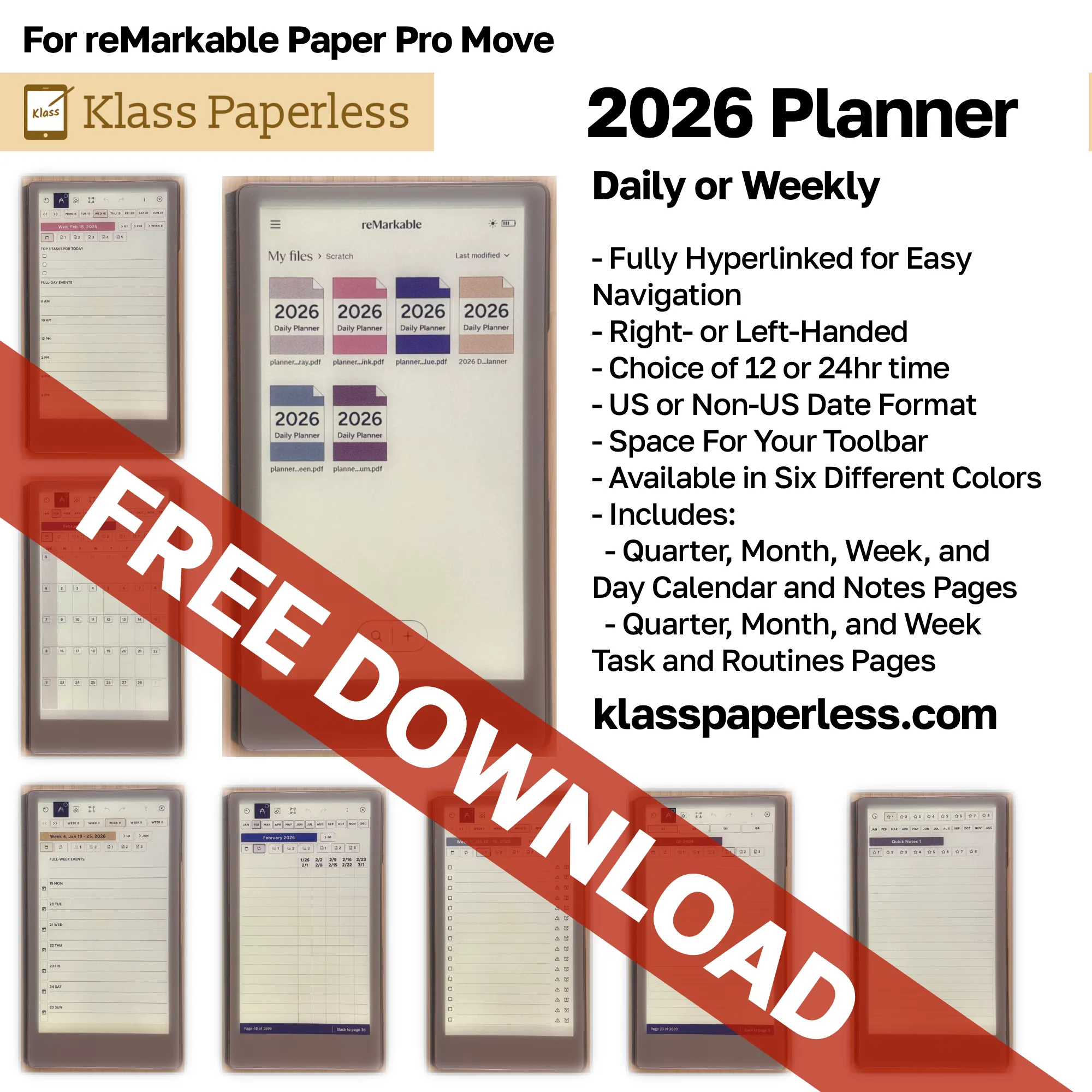 A collection of 208 PDF notebooks for the Paper Pro Move. 13 different theme colors, 10 or 15 sections/pages per section, right- and left-handed variations with lined, grid, dotted, or blank pages.