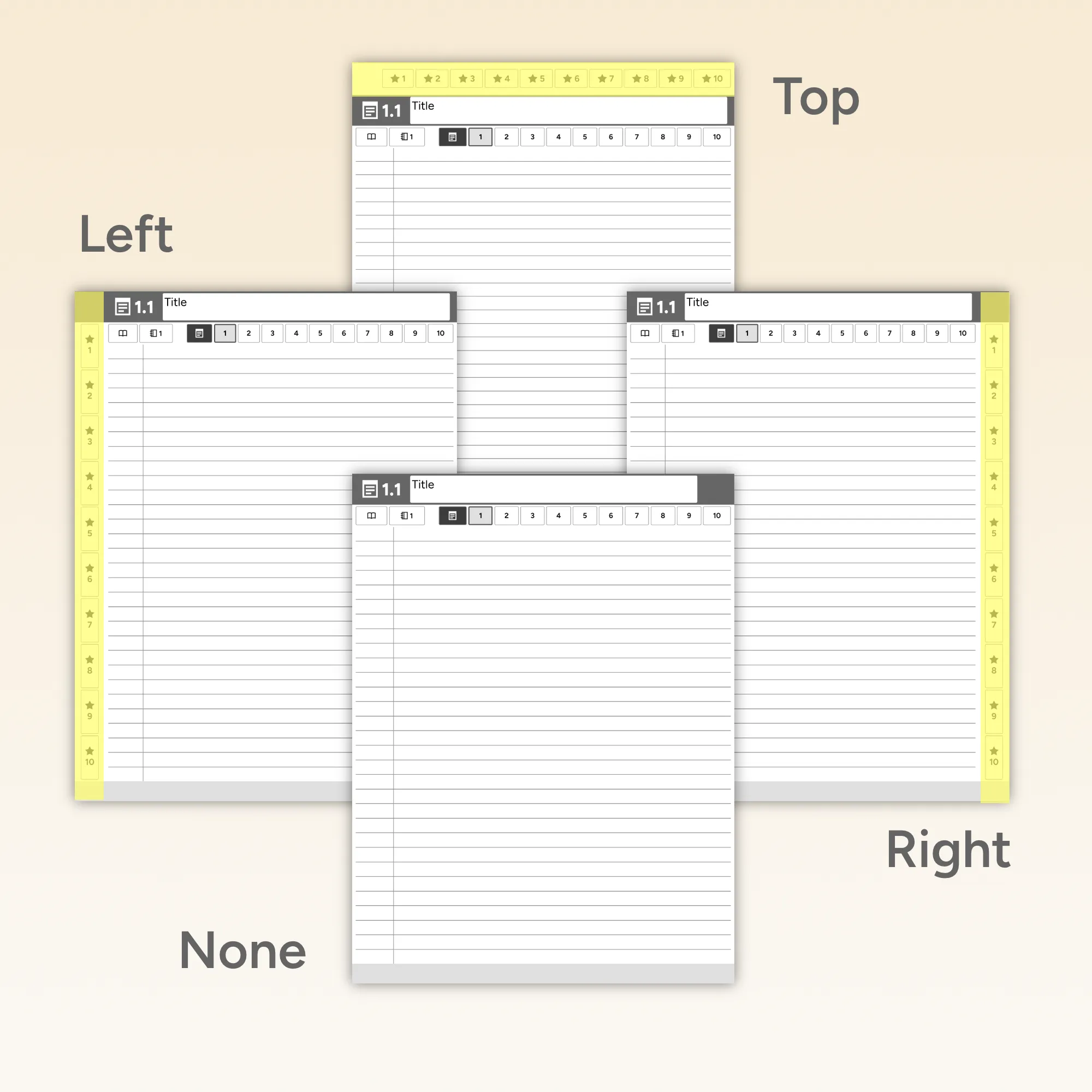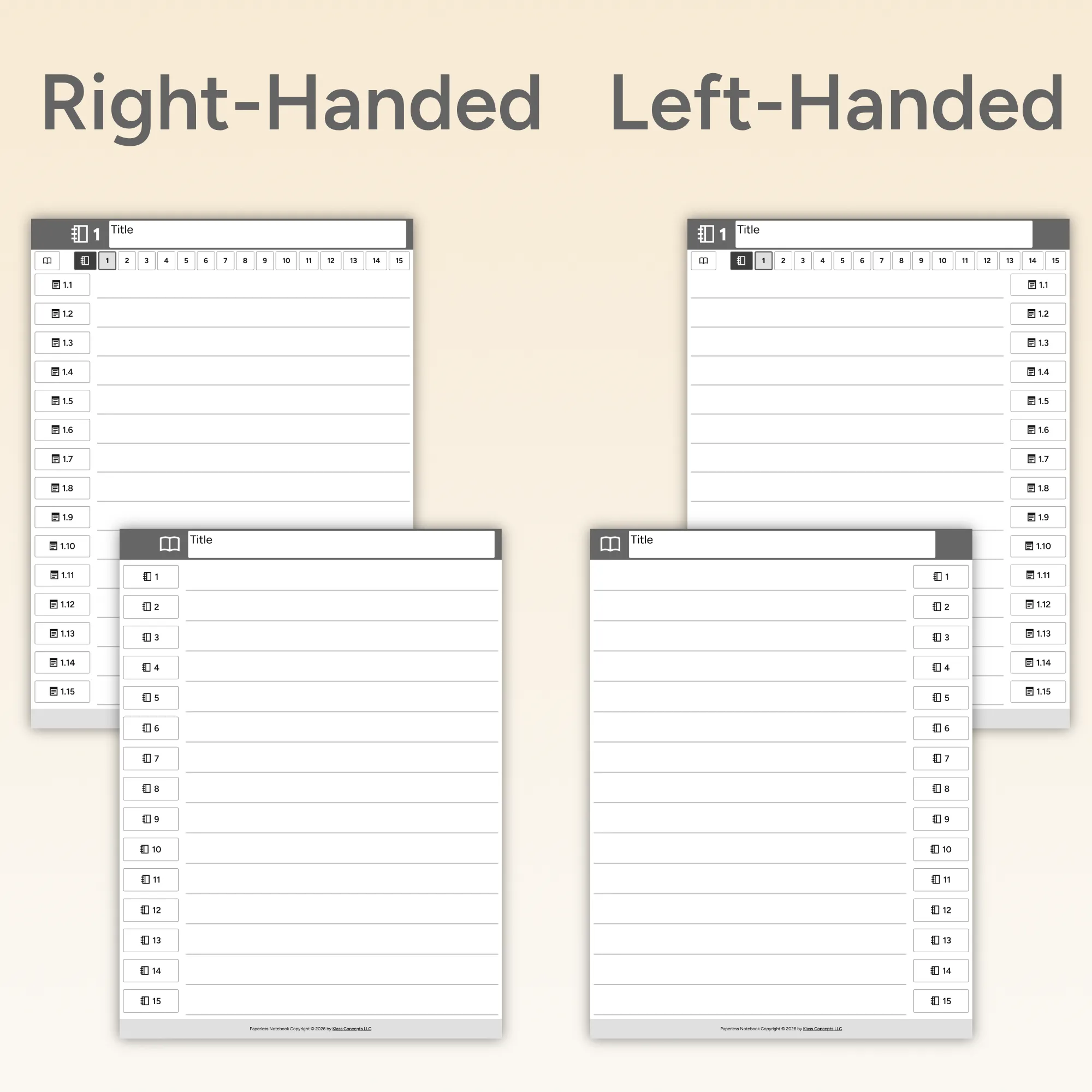 A collection of 96 PDF notebooks for the reMarkable 2. Includes fully-hyperlinked table of contents. Structured with sections, or unstructured with indexed pages. Right- and left-handed variations. Lined, grid, dotted, or blank pages. Space for your open toolbar.